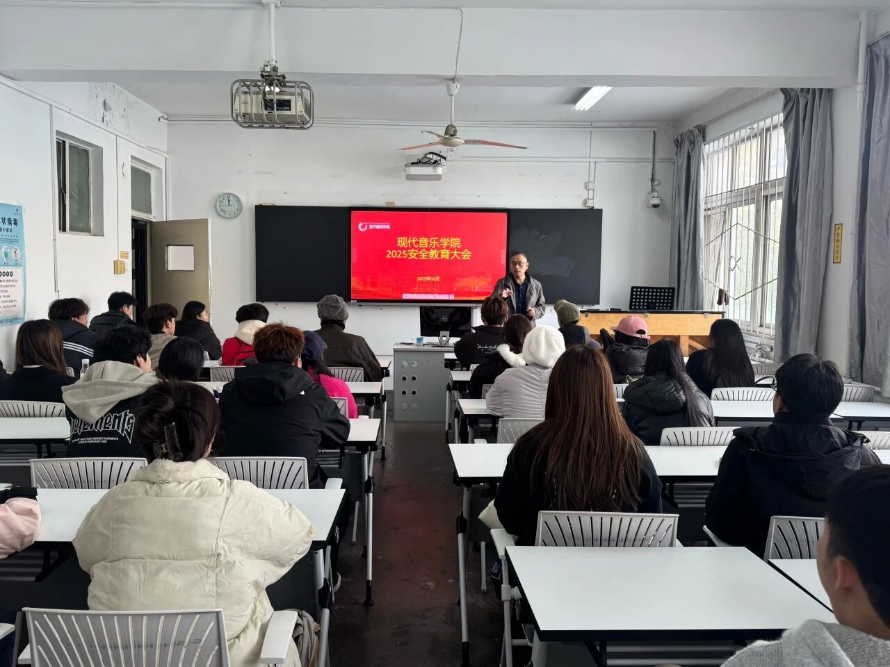 10月27日,现代音乐学院在文东校区教学楼504教室召开2025安全教育大会。学院党总支副书记杜建,全体本科学生会成员、2025级学生干部参加会议。杜建围绕新学期学生安全工作作了部署安排并提出要求,他指出,安全是...