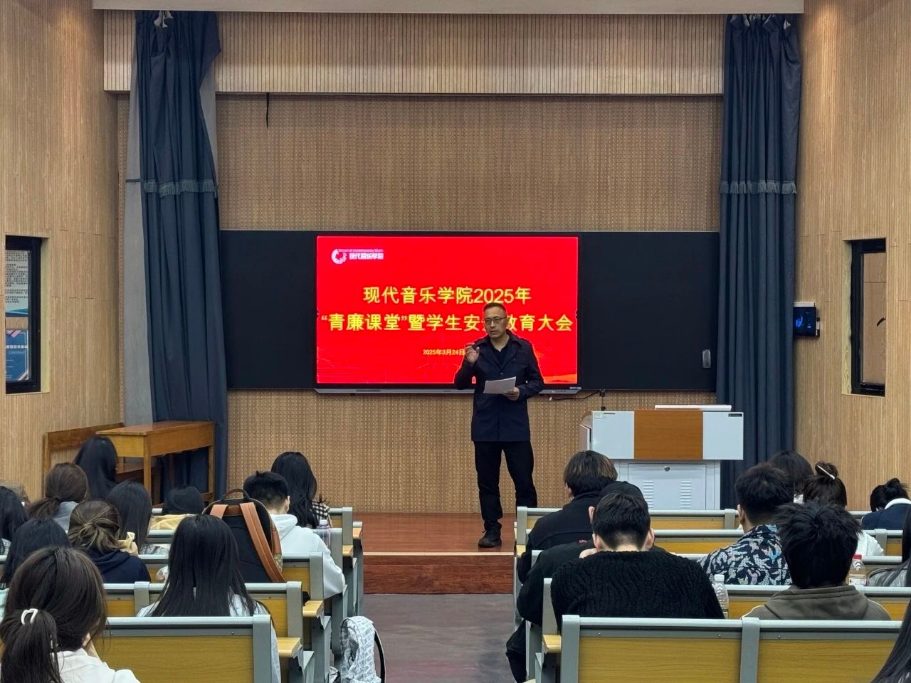 现代音乐学院举办2025年“青廉课堂” 暨学生安全教育大会