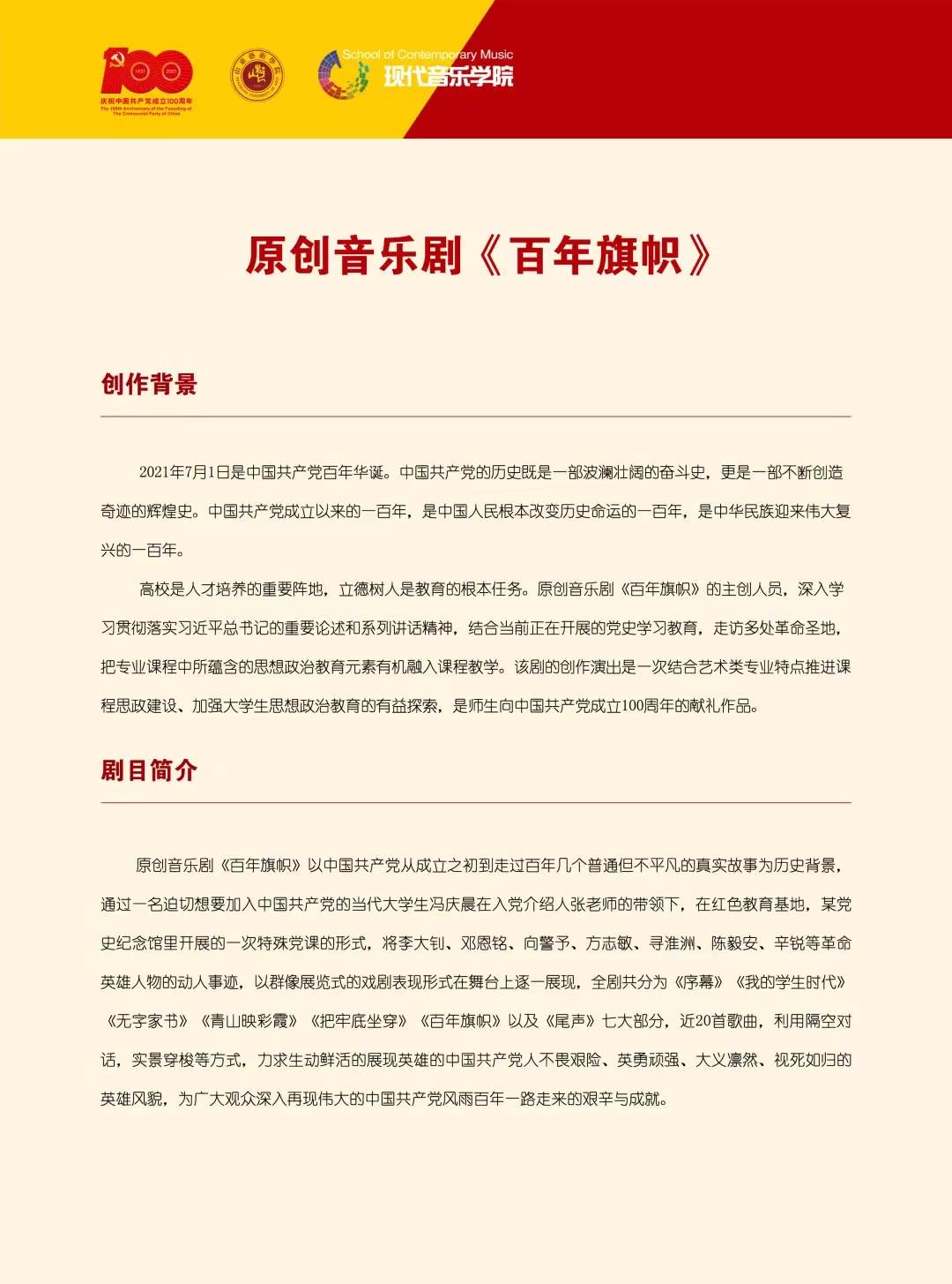 现代音乐学院原创音乐剧《百年旗帜》即将精彩上演