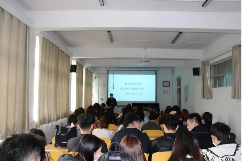 2021年4月1日下午2点,现代音乐学院在文东校区教学楼第一教室召开党史学习教育动员大会,传达学习我校党史学习教育动员大会精神,并对我院开展党史学习教育进行全面部署。现代音乐学院教师和学生党员参加会议。会议由党总支书记申端义主持。
