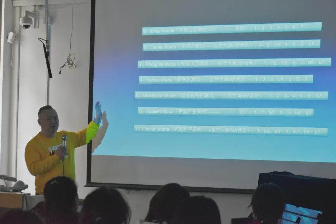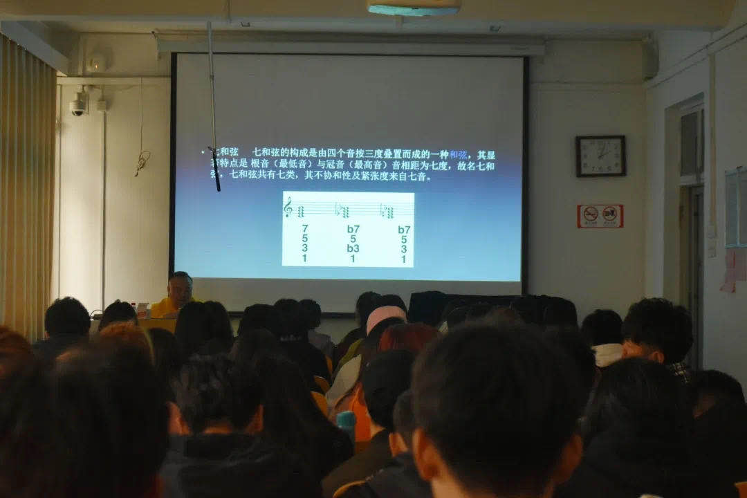 在接下来的问答环节,武老师一一解答了同学们提出的问题,让同学们对现代音乐和声有了更深入的认识,在音乐技法的表现上有了进一步的提高,使师生们受益匪浅。