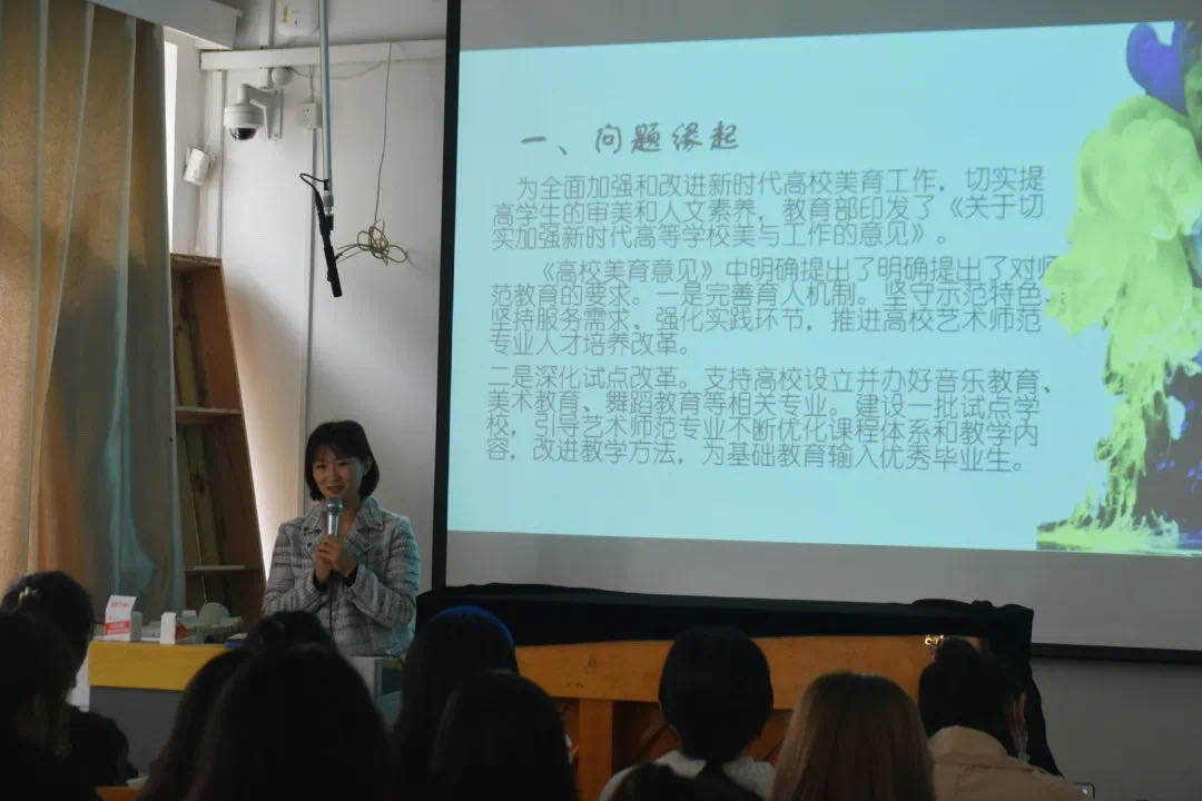 10月15日,我院本学期首场“现音讲堂”系列学术讲座《音乐教育学科思考》在文东校区公共课一教室开讲。本次讲座由我院青年教师马晓倩主讲,讲座围绕2019年教育部颁布的《关于切实加强新时代高等学校美育工作的意见》展开,结合我院2020年音乐学(师范类)课程改革实际,对选题缘起、音乐学(师范类)专业课程设置等方面进行了阐述,指出音乐学“师范类”学科发展形势和努力方向,并探讨了新课改形势下怎样的音乐教师才能更好的适应中小学课堂教学。此次讲座使老师和同学们更加深刻认识和理解音乐学“师范类”专业本质和发展方向,对今后我院音乐学“师范类”专业的改革起了推动作用。马老师的讲座内容丰富,讲解生动形象,台上台下良好互动,师生受益匪浅。