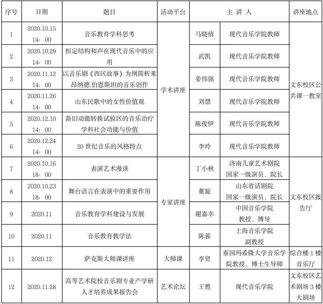 我院2020至2021学年第一学期“现音讲堂”系列学术讲座即将开讲啦!在未来的3个月里学院将推出教师学术讲座6场、校外名师名家讲座4场、大师课1场、艺术论坛1场等学术活动,届时各位主讲人将与同学们分享自己专业积累的真知灼见、学术研究的独到见解、艺术创作的感悟心得、艺术学科发展走向的新锐见解。10月15日(本周四)下午14时,我院青年教师马晓倩将为同学们带来第一场学术讲座,主题为音乐教育学科思考,马老师将结合自己的教学实践,和同学们一起分享自己对音乐教育学科认识和理性思考,讲座地点在文东校区公共课一教室。