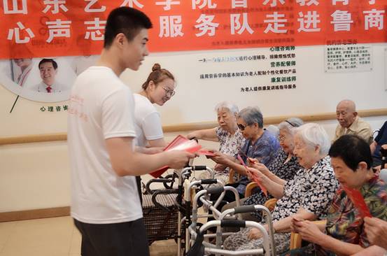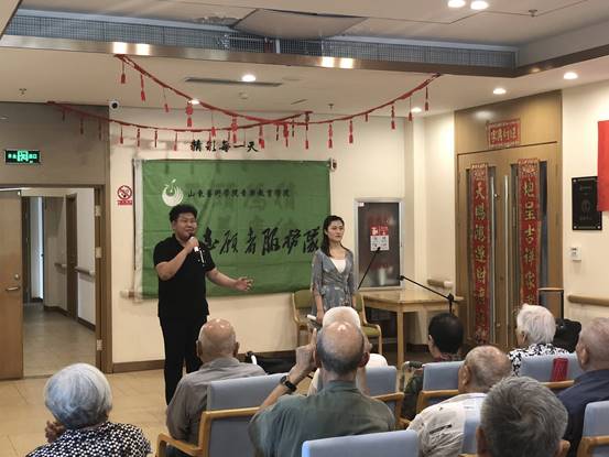 为响应团委《关于开展2018年山东省大中专学生志愿者暑期文化科技卫生“三下乡”社会实践活动的通知》的号召,我院心声志愿者服务队的志愿者们于7月14日走进鲁商福瑞达国际颐养中心,开展了敬老爱老的社会实践活动。在颐养中心,志愿者们向老人送上了慰问品,与他们进行交流,了解他们的身体状况和日常起居情况,并向老人们献上祝福,整个场面其乐融融。。