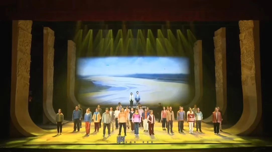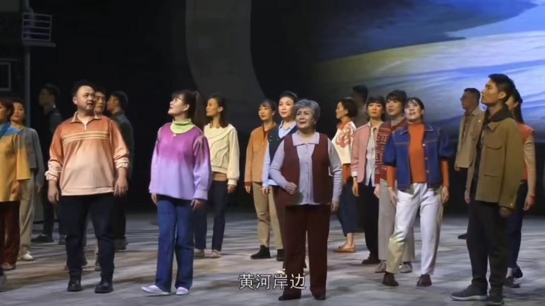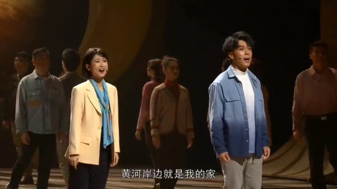 在音乐剧《我家门前有条河》的舞台上,主题歌《黄河岸边就是我的家》的旋律响起时,观众仿佛能感受到黄河的波涛汹涌和黄河人的豪情壮志。四重唱的反复响起,使得歌曲更具感染力,让观众忍不住跟着节奏大声跟唱。台上台下的歌声汇成一片,为新时代放歌,为黄河人塑像。