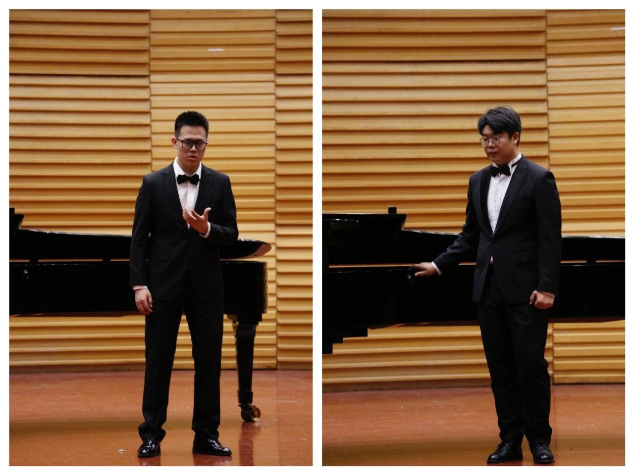 独唱曲目包括德文歌曲《献词》《晚星颂》、英文歌曲《当我躺在尘土之下》、意文歌曲《仙女的眼睛》《请别忘了我》《快乐的预感》《小嘴》《诺言》等。这些歌曲旋律优美,歌词动人,同学们用纯净的嗓音诠释了歌曲的内涵,让观众感受到了音乐的魅力。意文歌曲《舞曲》欢快的节奏更是带动了全场气氛,同学们演唱的《你不要再去做情郎》《拿着它,我已使你自由》《耳边响起他的声音》《啊!我永远失去了你》等歌曲,让观众感受到了青春的活力与激情。谈嘉成老师演唱了意文歌曲《我心爱的意中人》和法文歌曲《卡洛,我的末日就在眼前》。他的歌声深情款款,充满了感染力,让观众陶醉在音乐的海洋中。