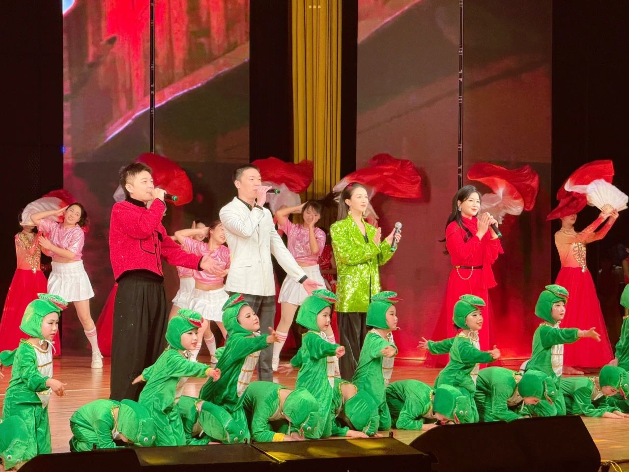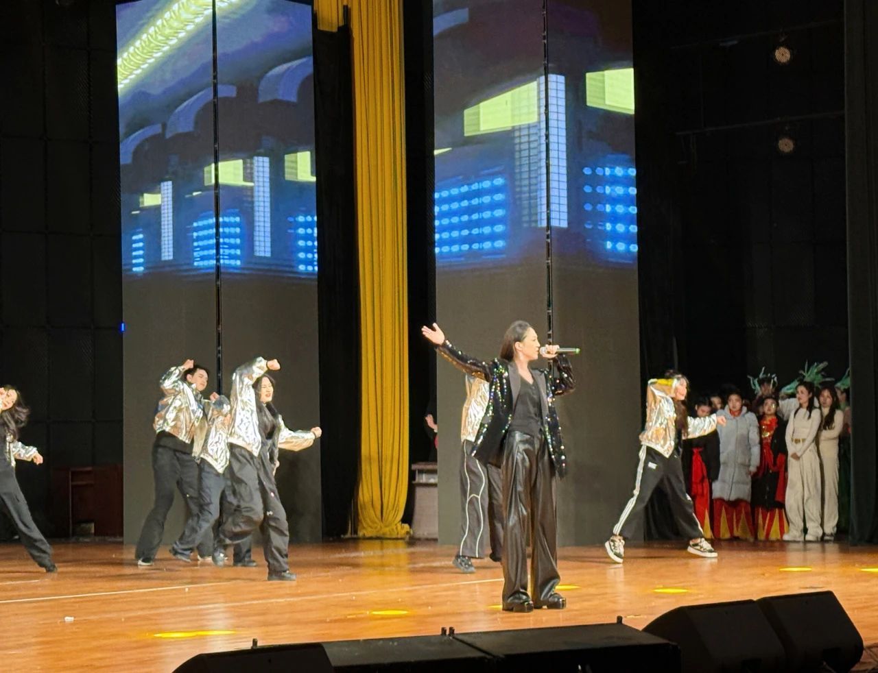 1月24日(农历腊月二十五)下午3点,“蛇韵舞华章 正阳正当时”2025春节联欢晚会在河南省正阳县大剧院举行。现代音乐学院2022级音乐专业研究生周艺璐参加晚会演出,演唱了歌曲《逆战》,参加表演了歌舞《新年快乐》以及合唱《相亲相爱》,欢快的歌曲与现场浓郁的氛围为正阳县百姓送上难忘的新春文化体验。