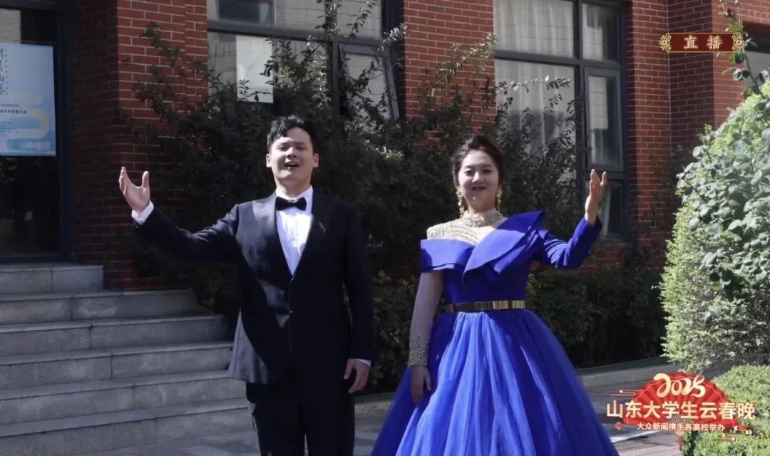 1月26日(农历腊月二十七)晚8点,由大众新闻举办的2025山东大学生云春晚在线上全网播出,现代音乐学院2023级音乐专业研究生王浩、2021级音乐学(师范类)专业本科生马文豪演唱的歌曲《领航》入选。王浩、马文豪通过歌曲《领航》,用激昂的歌声,唱出对祖国的热爱与赞美,传递出坚定信念和磅礴力量。熟悉的旋律、深情的演绎,展现出在党的引领下,祖国砥砺前行的光辉历程,在春晚舞台上唱响时代强音,使观众心潮澎湃,产生强烈共鸣。