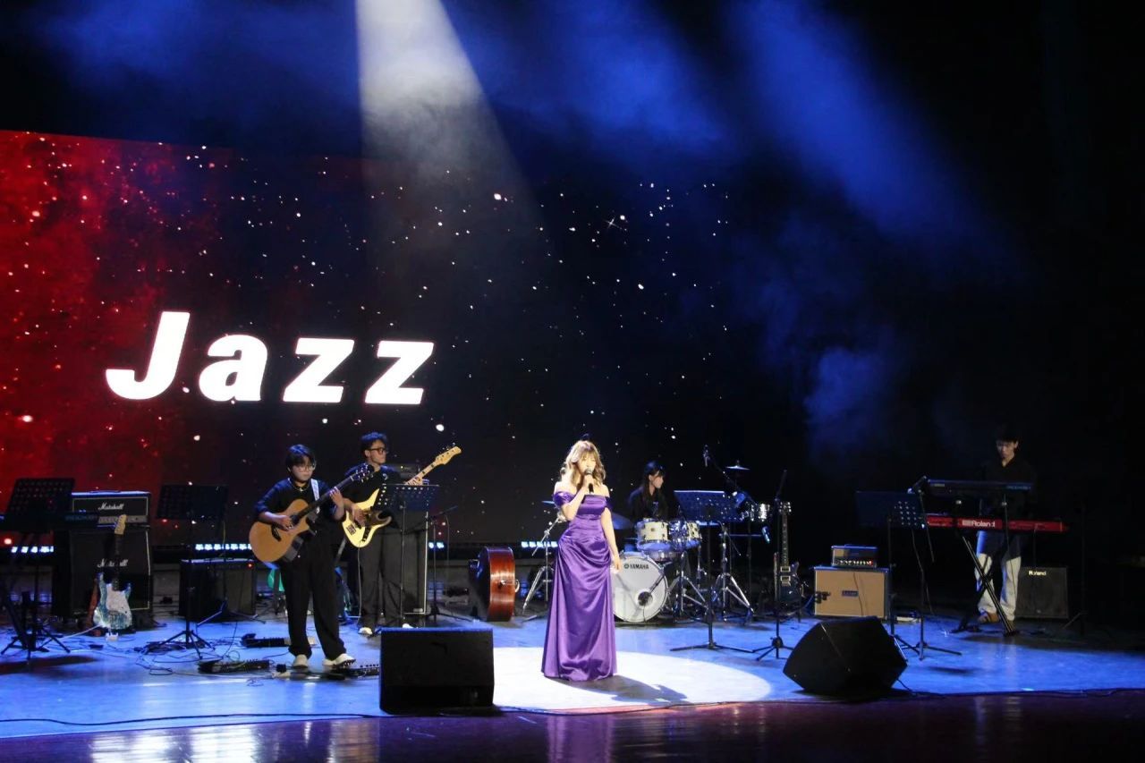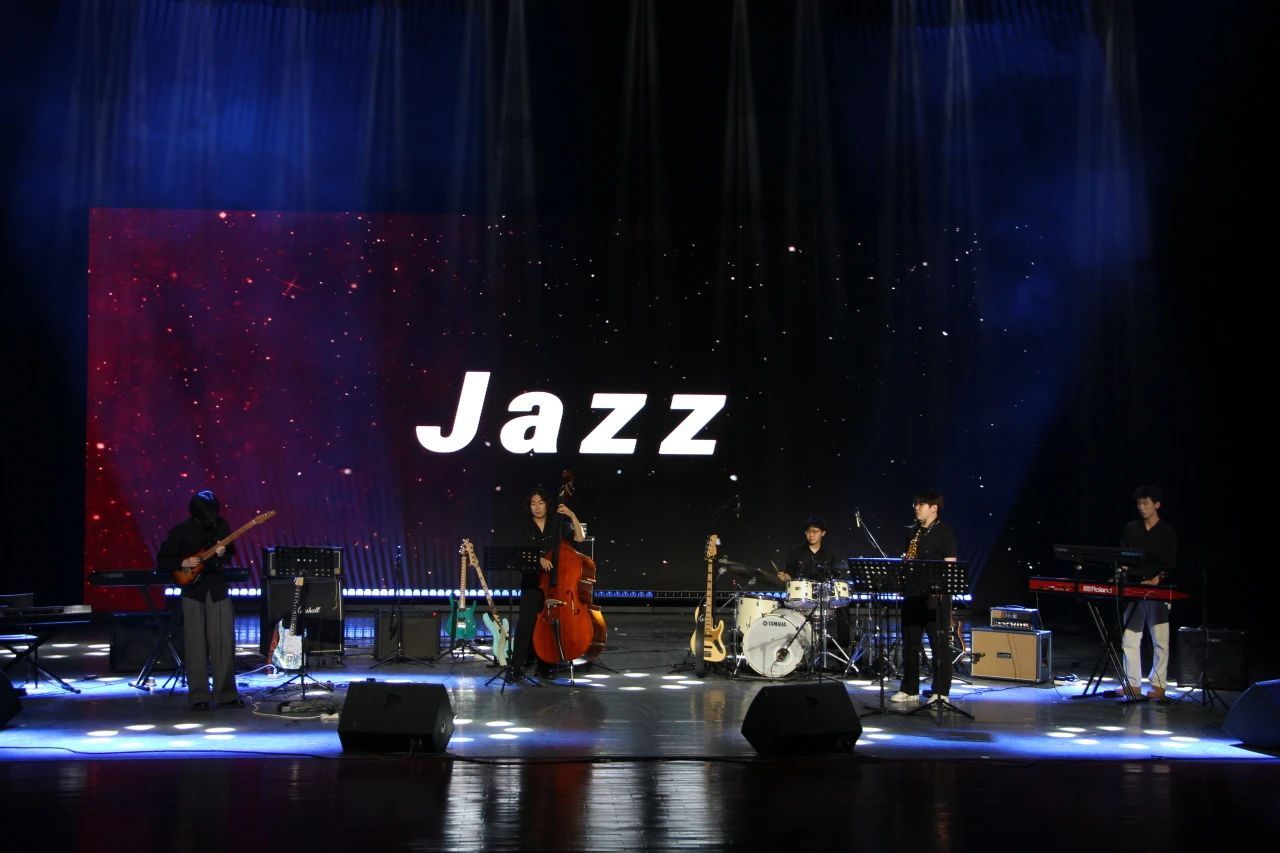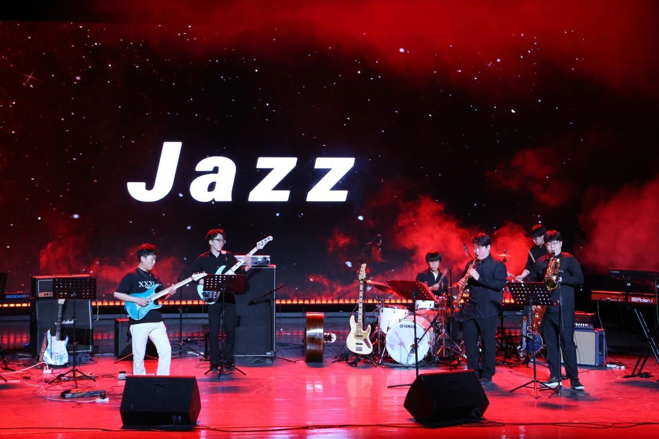 此次爵士专场音乐会不仅展示了我院在爵士音乐领域的教学成果,更是为现场观众带来了一场前所未有的视听享受。精彩演出的背后,凝聚着流行音乐教研室特别是马久力、徐润泽、时旭三位青年教师的匠心与心血。从曲目的筛选编排,到舞台表现力的雕琢;从节奏韵律的精准把控,到音乐情感的细腻诠释,他们以扎实的专业功底和丰富的教学经验,为学生量身定制指导方案。在他们的悉心指导下,同学们得以突破自我、释放潜能,将课堂所学转化为舞台上的璀璨光芒。每一个跃动的音符、每一次默契的配合,都充分展示出现音学子朝气蓬勃的艺术风采,为“闳美山艺”毕业季留下了精彩的印记。
