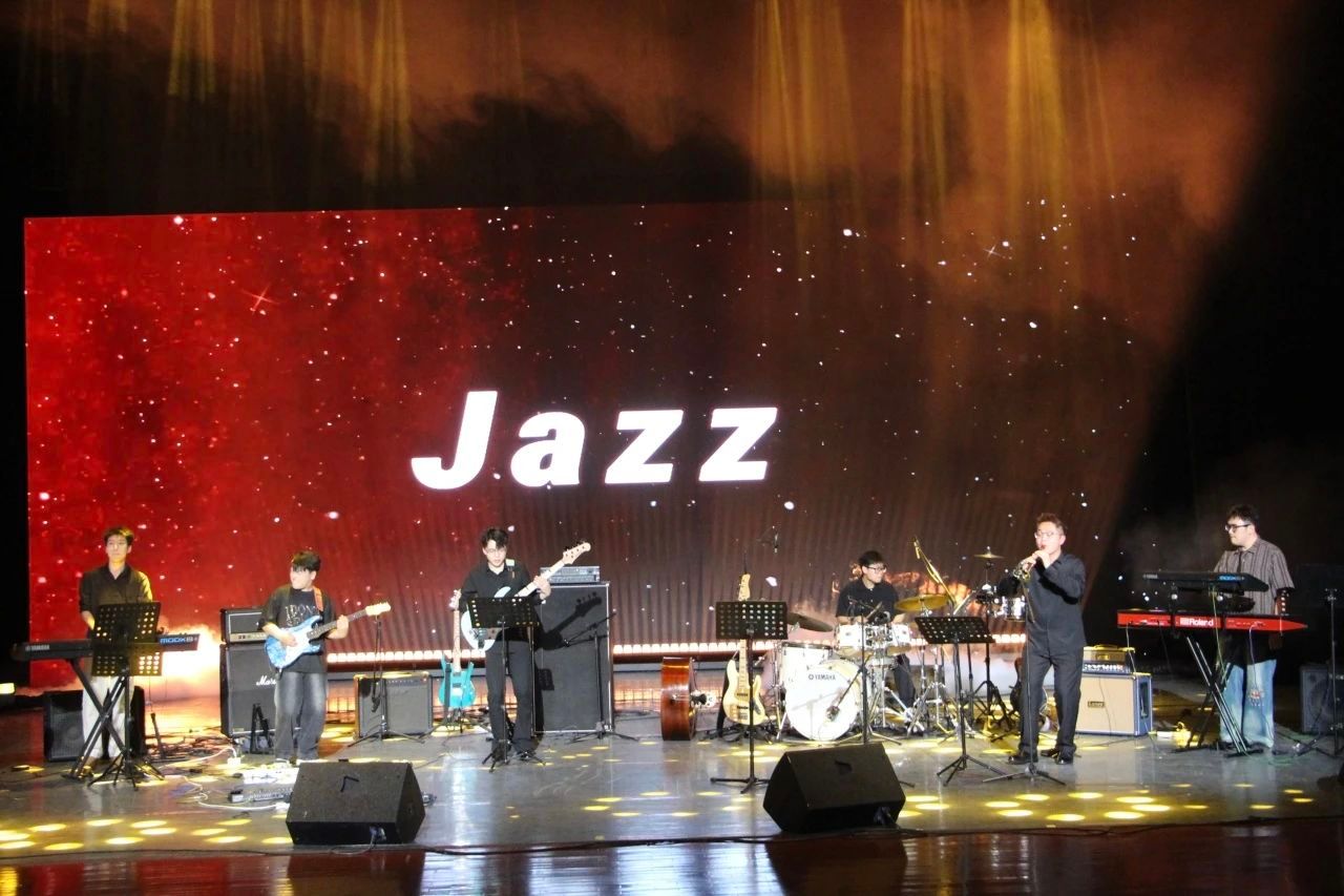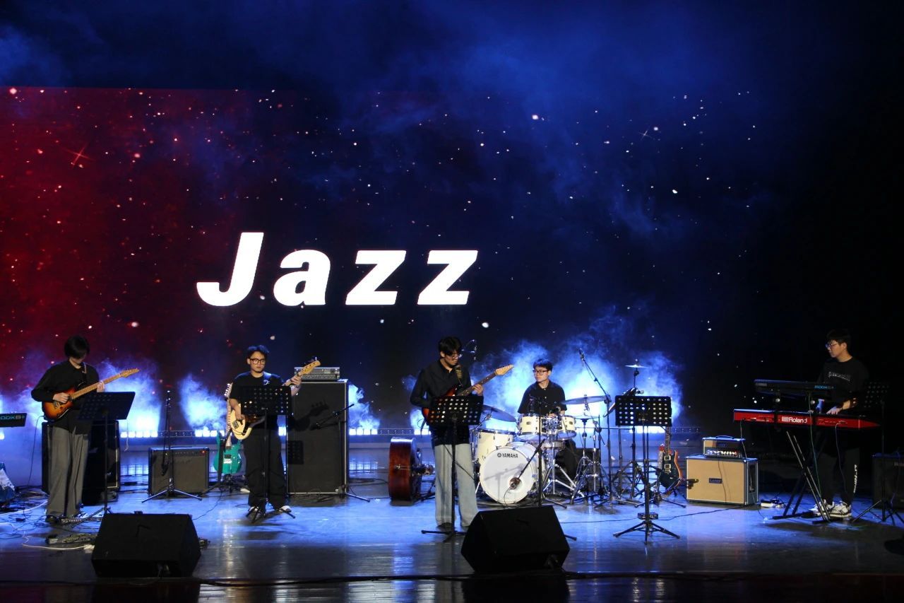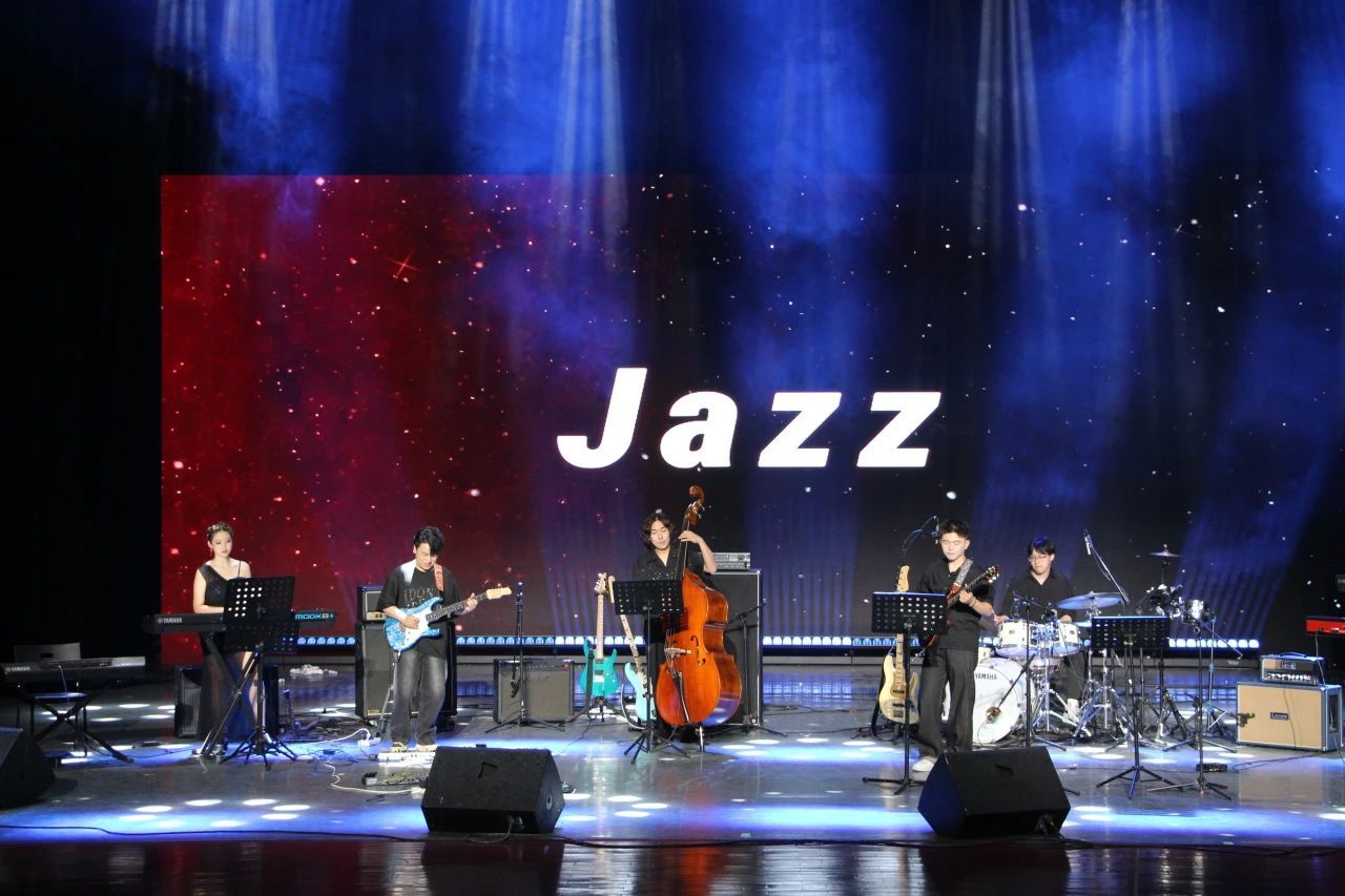 此次爵士专场音乐会不仅展示了我院在爵士音乐领域的教学成果,更是为现场观众带来了一场前所未有的视听享受。精彩演出的背后,凝聚着流行音乐教研室特别是马久力、徐润泽、时旭三位青年教师的匠心与心血。从曲目的筛选编排,到舞台表现力的雕琢;从节奏韵律的精准把控,到音乐情感的细腻诠释,他们以扎实的专业功底和丰富的教学经验,为学生量身定制指导方案。在他们的悉心指导下,同学们得以突破自我、释放潜能,将课堂所学转化为舞台上的璀璨光芒。每一个跃动的音符、每一次默契的配合,都充分展示出现音学子朝气蓬勃的艺术风采,为“闳美山艺”毕业季留下了精彩的印记。