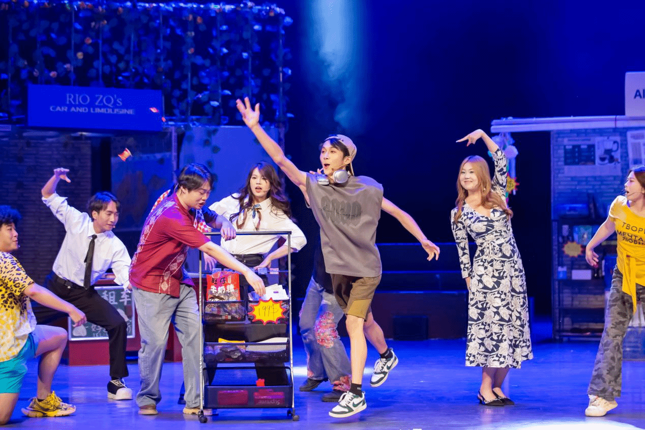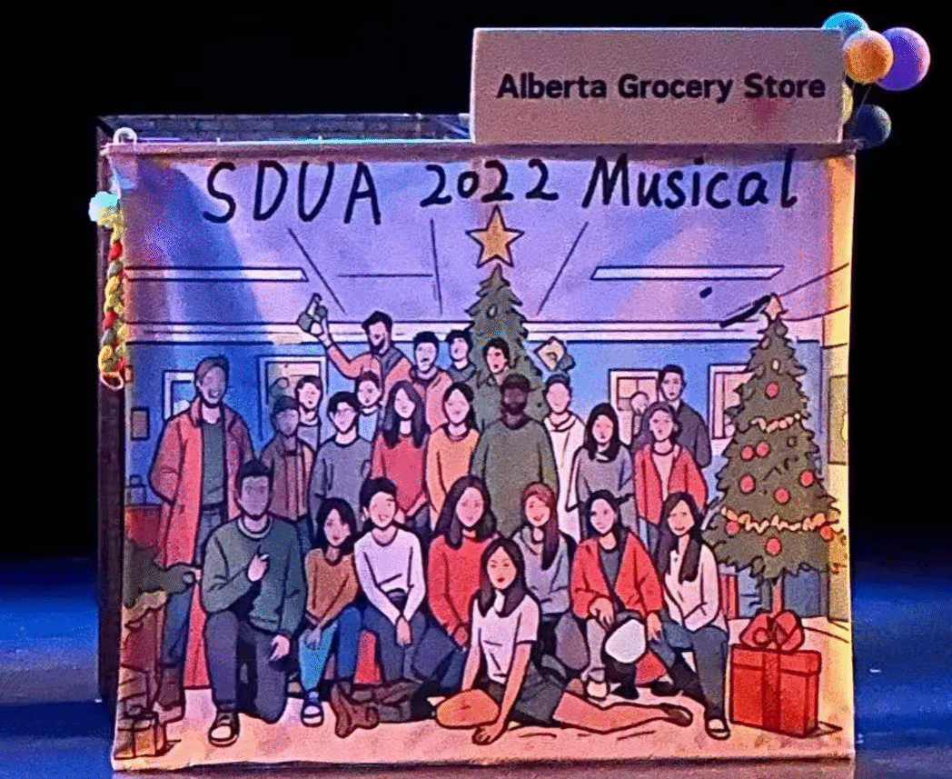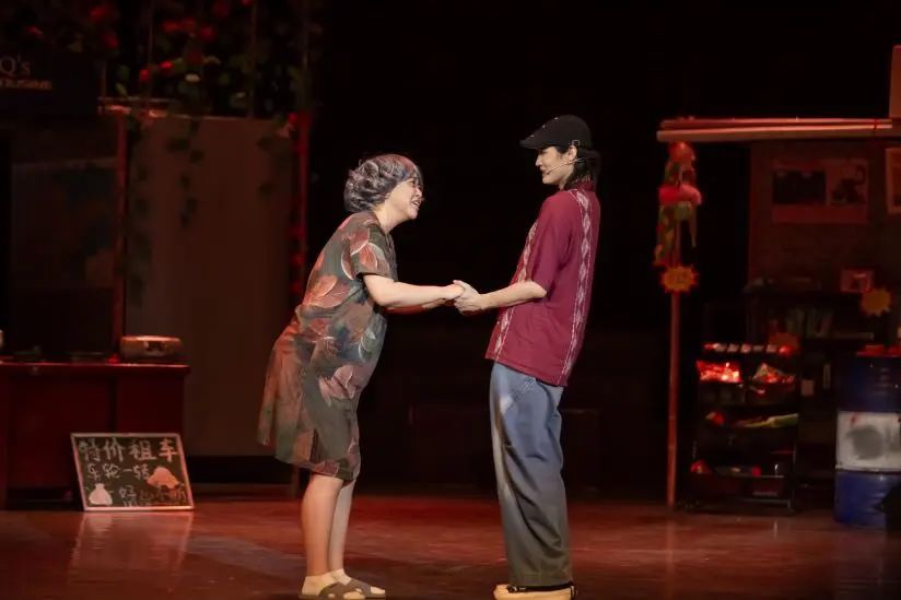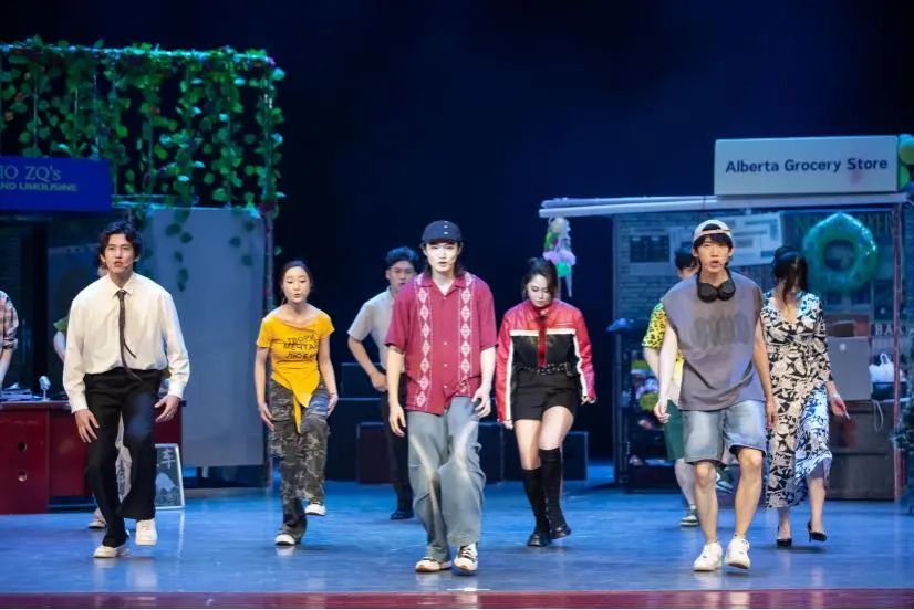 演出以充满热力的拉丁音乐《In the Heights》作为开场序曲,瞬间点燃全场氛围。当斯坦福辍学少女尼娜唱响《深呼吸》,剧情随之展开——她在返乡后直面家庭为其付出的牺牲,感受着凯文无声的父爱,在亲情羁绊中重新探寻学业方向;《96,000》的旋律如跳跃的音符在舞台上迸发,将剧情推向高潮,生动展现梦想与现实的激烈碰撞。舞台灯光聚焦于录音机的瞬间,全剧尾声《家》以舒缓的合唱缓缓流淌,与开场曲《In the Heights》在时空交错中重构同一舞台场景。这不仅是情节的圆满落幕,更是主题的深度凝练与情感的终极释放。尤为动人的是,乌斯纳维小店门口悬挂的是2022级音乐剧专业全体大合照——画面中同学们的笑脸与剧中《家》的温暖意象相互呼应,恰似一个充满爱与热忱的集体缩影,用艺术的形式诉说着属于这群年轻人的青春故事。