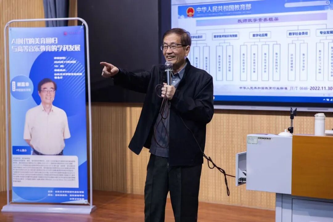 11月26日,中国音乐学院谢嘉幸教授在文东校区为现代音乐学院师生作了题为《AI时代的美育回归与高等音乐教育的学科发展》的学术讲座。本次讲座由现代音乐学院主办,近200名师生聆听讲座。讲座由院长杨春红主持。