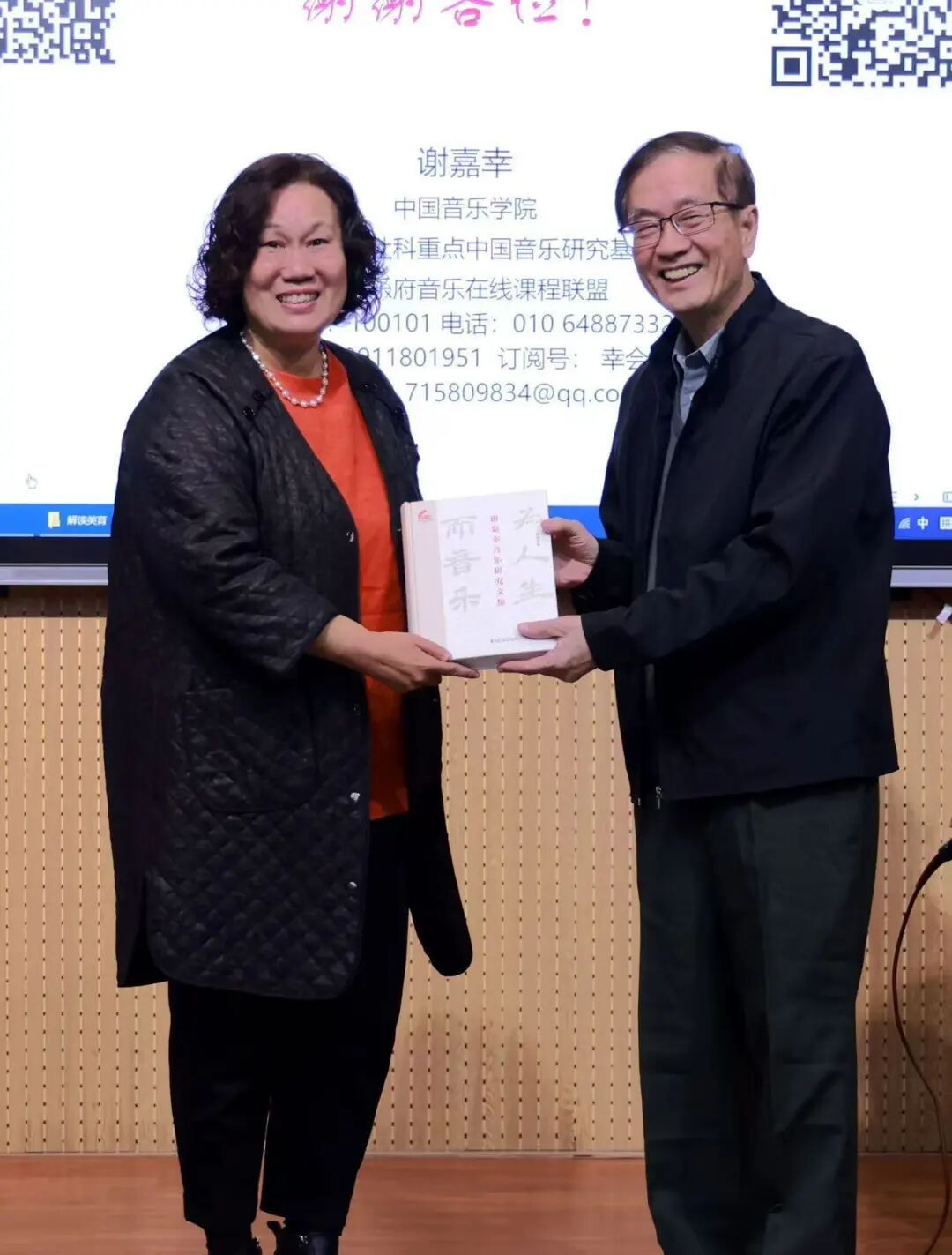 讲座最后,谢嘉幸向现代音乐学院捐赠了《为人生而音乐:谢嘉幸音乐研究文集》,以此表达对山东艺术学院音乐教育专业未来发展的殷切期望与美好祝愿。杨春红代表现代音乐学院接受捐赠。