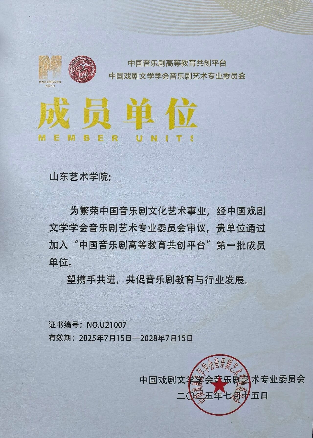 在研讨会期间召开的2025年中国戏剧文学学会音乐剧艺术专业委员会年会上,举办了“中国音乐剧高等教育共创平台”第一、二批成员单位及成员颁证仪式,山东艺术学院作为第一批成员单位获颁证书;举行了《中国音乐剧研究(第一辑)》新书发布仪式,姜伟强撰写的《高校音乐剧人才培养中理论课程的设置与功能研究》入选。