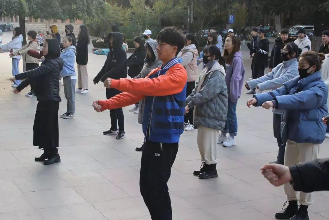 灿烂的阳光洒满校园,给冬日里的校园注入了无限的暖意与活力。我院为增强学生的身体素质,提高学生的自律意识。2019年11月11日早7:15,现代音乐学院2019级全体本科生准时到达活动广场,团总支指导学生会筹划已久的早操方案正式开始实施。