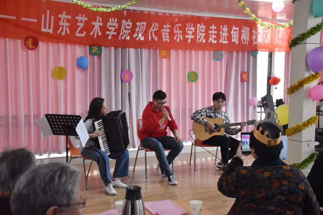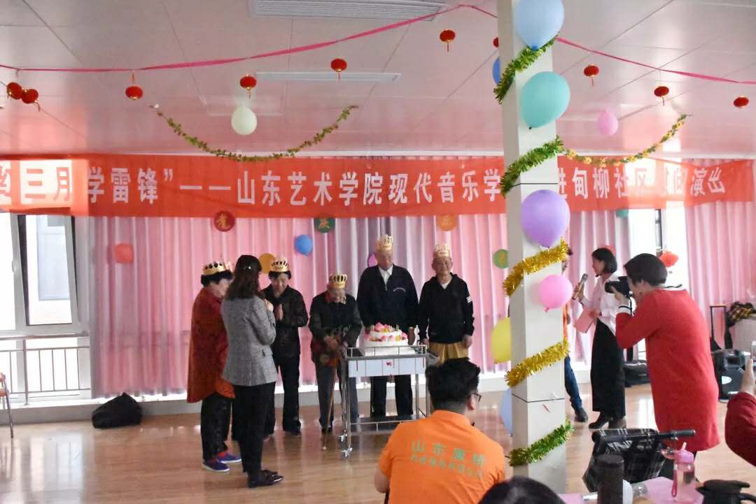 演出当天,适逢社区为老人们举办生日会,在我院志愿者们的帮助下,为社区的每一位老人分发了蛋糕。演出在老人和志愿者的合作歌曲《我和我的祖国》中结束。