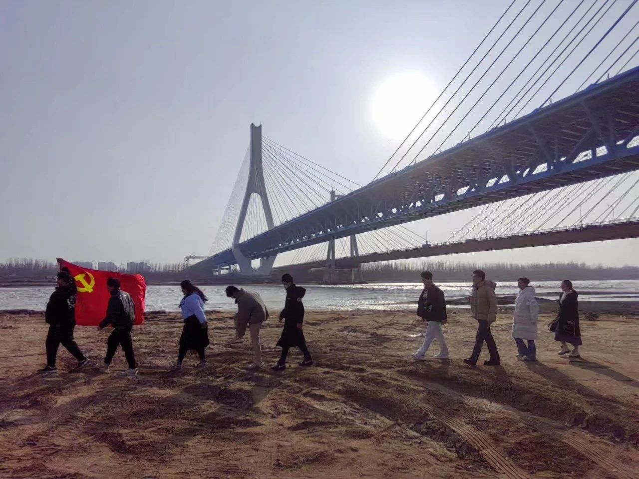 同学们到达黄河百里风景区后,沿着黄河沿岸的美景和重要地标,完成了约3公里的健步走,近距离地感悟黄河文化,彰显青年学生朝气蓬勃的精神面貌,同时也更加坚定了永远跟党走的信念。