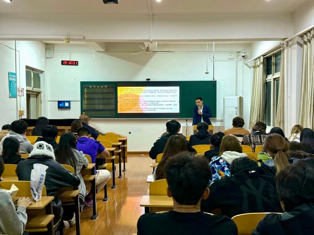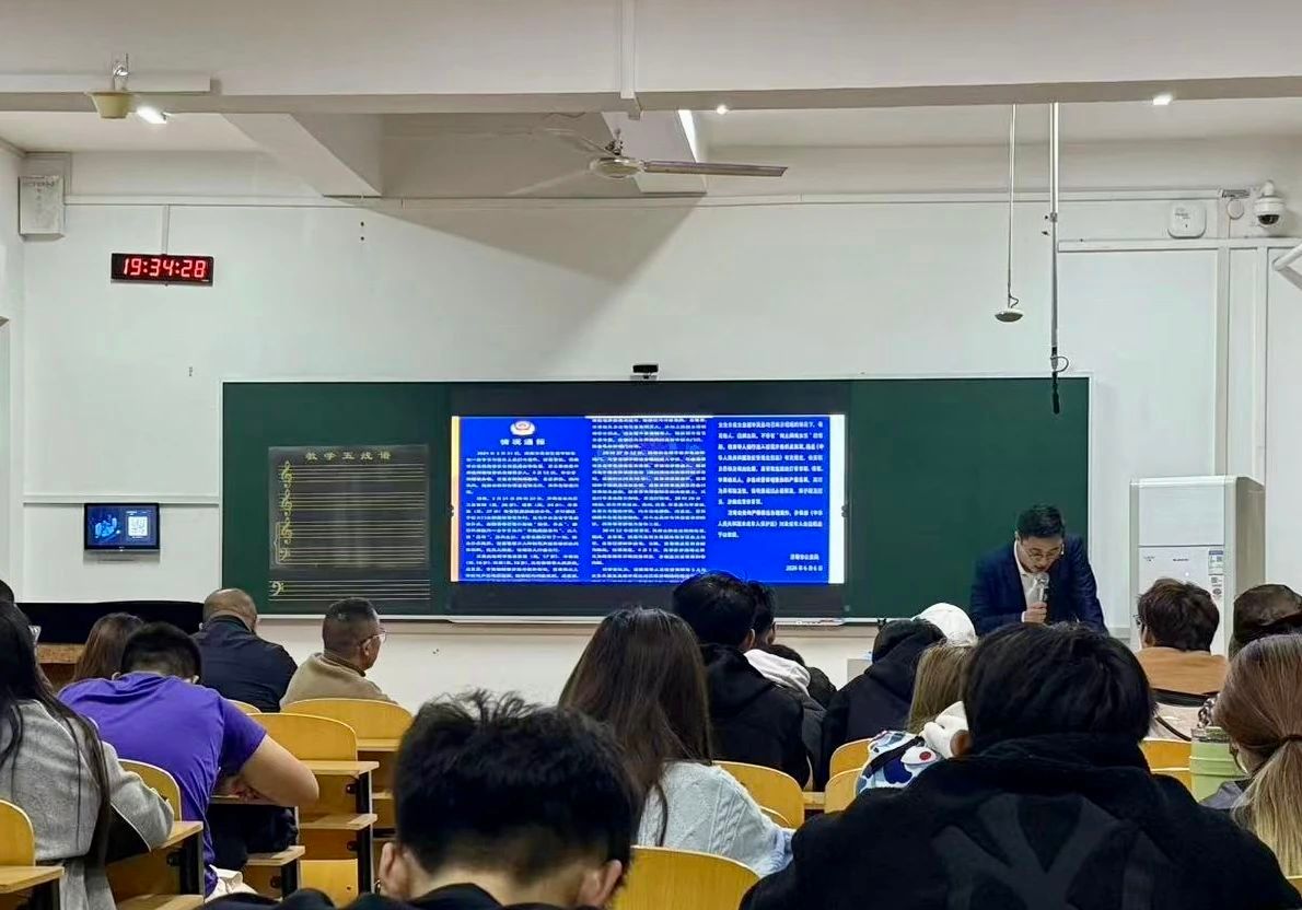 11月13日晚,我院在文东校区教学楼公共三教室开展普法讲座,2023级全体同学参与学习。本次普法讲座,邀请业内资深法律专家,他们以丰富的经验、专业的视角,把复杂的法律条文转化为通俗易懂的生活智慧。从家庭琐事到职场风云,从财产纠纷到权益维护,深度剖析与日常生活紧密相连的法律要点。真实生动的案例剖析与互动交流环节,让同学们仿佛置身法律实践的第一线,真切感受到法律的力量与温度,也让同学们不再对法律感到陌生与困惑,可以畅所欲言,提出心中的法律疑问,与专家们面对面交流,获取专业精准且极具实用性的解答与建议,为大学生的未来撑起法律保护伞。