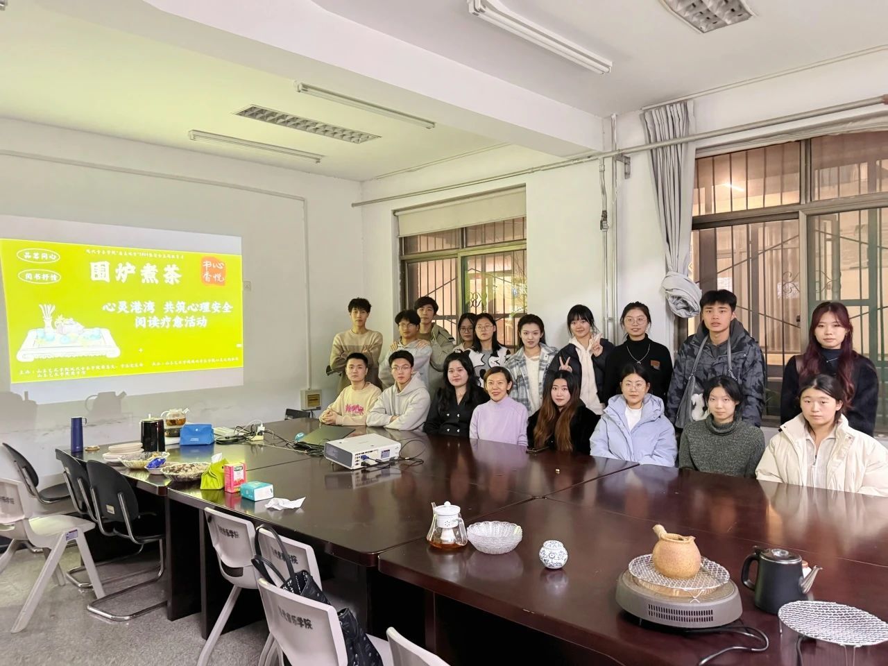 11月26日晚,为提高学生的心理安全意识,营造一个相互支持、开放交流的校园环境,我院团总支联合“心灵之约”社团与学校图书馆举办“围炉煮茶•心悦书香”活动。此次活动旨在以茶话会的形式,宣传心理健康理念,普及心理健康知识,帮助学生树立正确的心理安全观念。