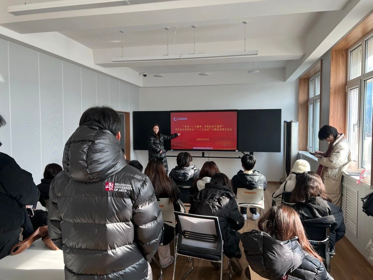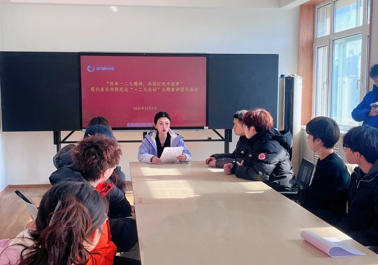 12月3日,我院团总支组织各团支部围绕“传承一二·九精神 共筑红色中国梦”为主题,开展一场意义深刻的红色宣讲活动。宣讲以团总支老师为全体团支部书记召开启动仪式为起点拉开序幕,同时为同学们带来了一场深刻而生动的爱国主义教育大思政课。随后,团支部书记们以支部为单位声情并茂地宣讲了“一二·九”运动中爱国青年们的英勇事迹,让同学们深刻感受到了先辈们的爱国情怀和不屈不挠的精神。宣讲活动现场,气氛热烈而庄重,同学们怀着崇敬之心,共同回顾了“一二·九”运动那段波澜壮阔的历史。