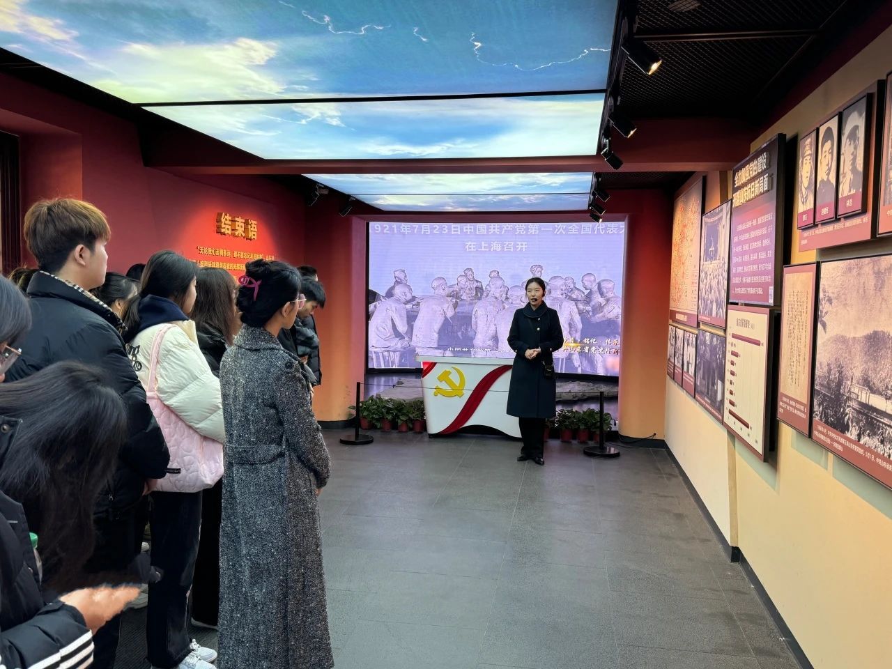 在讲解员的引导解说下,同学们踏入中国共产党早期历史纪念馆,历史的画卷在眼前徐徐展开。馆内陈列的一幅幅泛黄的照片、一份份珍贵的手稿、一件件历经岁月的文物,再现了早期中国共产党人在艰难困苦中探索救国救民道路的历程。在这里,同学们看到了王尽美、邓恩铭等革命先驱为了理想信念,不惜抛头颅、洒热血的英勇事迹,以无畏的勇气和坚定的信念,在黑暗中摸索前行,播撒下革命的火种。