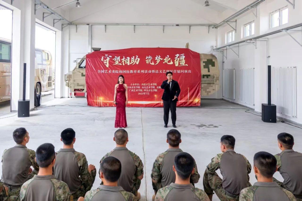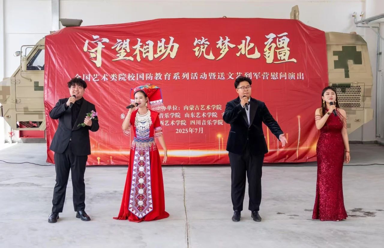 为纪念中国人民抗日战争暨世界反法西斯战争胜利80周年,深入学习贯彻习近平总书记“加强国防教育,增强全民国防观念”的重要指示批示精神,推动国防教育从课堂延伸至祖国边境一线,引导学生树牢国防意识,厚植家国情怀,7月1日至7月6日,现代音乐学院党总支副书记杜建一行师生4人参加了由内蒙古艺术学院主办的“守望相助,筑梦北疆”—第二届全国艺术类院校国防教育系列活动。在中国共产党104岁生日到来之际,以艺术实践为边防军民送去祝福和温暖。