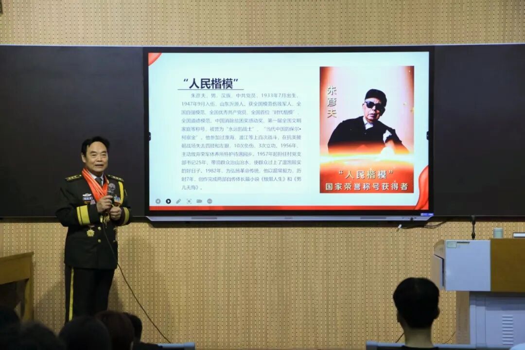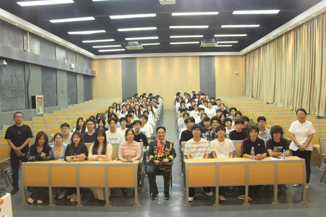 报告会以《传承红色基因,争当时代新人》为主题,刘永海以自身从军报国、服务社区、不断奉献的人生经历为开端,重点讲述了“中国的保尔·柯察金”“人民楷模”朱彦夫的故事,围绕枪杆子、锄杆子、笔杆子三个方面,还原了朱彦夫“军人脊梁永不弯”的铁血意志、用假肢丈量张家泉村土地带领村民致富的奋斗史和口衔笔杆创作的精神信仰,为2025级新生上了一堂生动的爱国主义教育课。随后,刘永海与“00后”新生展开跨代际交流,通过展示“老兵的军功章”“社区的民情日记”等实物,让抽象的家国情怀具象化。当听到、看到那一件件鲜活的事迹和实物时,同学们深受触动,深刻感悟到现在的幸福生活是多么的来之不易,并决心奋发图强,努力学好专业知识,用艺术服务社会、报效祖国