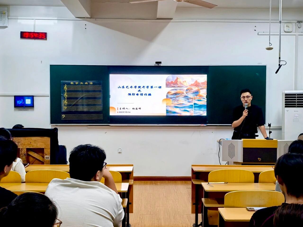 为强化新生安全防范意识,9月13日晚,现代音乐学院在文东校区教学楼公共三教室举办“禁毒反诈”专题知识讲座。活动邀请济南市公安局历下区分局禁毒大队二级警长部竞美、山东金盛阳律师事务所律师柏浚峰主讲,为2025级全体新生带来了一场兼具实用性与指导性的安全知识普及课。