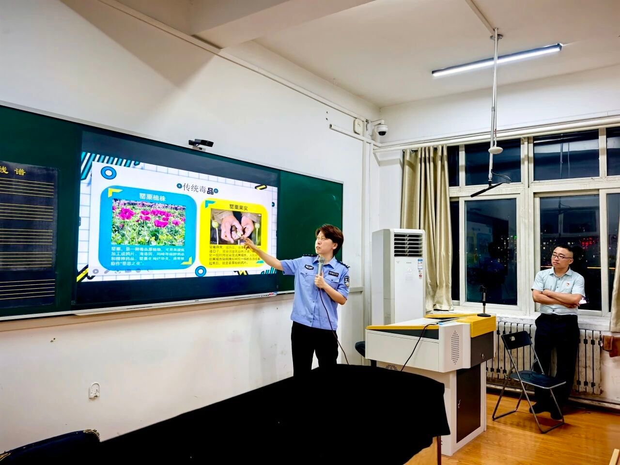 部竞美从“齐心协力 远离毒品侵害”“毒品之祸猛于虎”“青少年如何预防”三个方面展开讲解,详细介绍了毒品的分类与制作过程,特别提醒大家警惕伪装毒品和隐形毒品,一些看似普通的零食、饮料,都可能隐藏着毒品的身影;深入剖析了青少年吸食毒品的常见原因,如好奇、受引诱、不良交友等。关于青少年如何预防毒品侵害,部竞美也给出了专业建议,包括:防止因好奇而尝试,谨慎选择朋友,减少吸烟等不良行为,不涉足学生不宜的场所,不盲目模仿他人行为,主动学习毒品常识等。