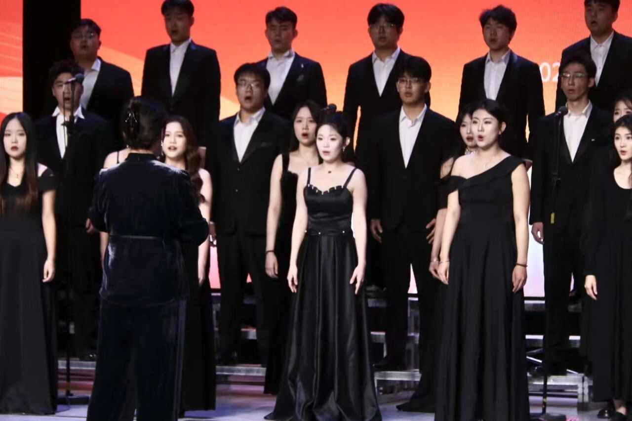 我院合唱团参加了开幕式演出,同学们以磅礴的气势与饱满的热情,演唱了《雨后彩虹》《怒吼吧!黄河》两首作品。《雨后彩虹》以悠扬婉转的旋律与明朗开阔的意境,勾勒出风雨过后霞光满天的美好图景,既传递出历经磨砺终见光明的希望之感,也象征着新时代青年不惧挑战、向阳而生的精神风貌。《怒吼吧!黄河》是《黄河大合唱》的终曲和高潮,通过愤怒的情绪、战斗的号角和坚定的节奏,展现了中国人民在抗日战争中的英勇斗争精神和必胜信心。