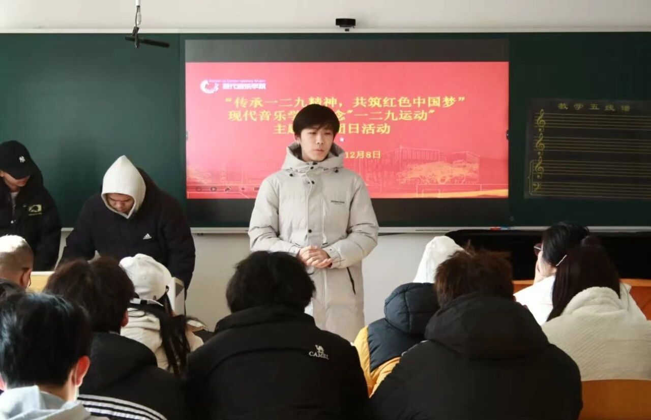 为纪念“一二·九”运动90周年,赓续红色血脉、厚植爱国情怀,近日,现代音乐学院开展“铭记一二·九 厚植家国情 ”主题系列教育活动。